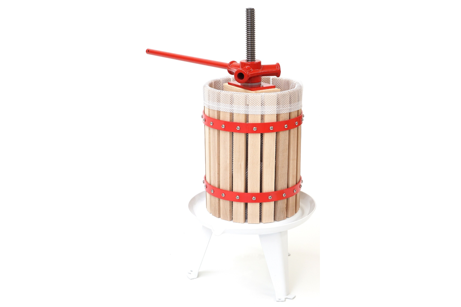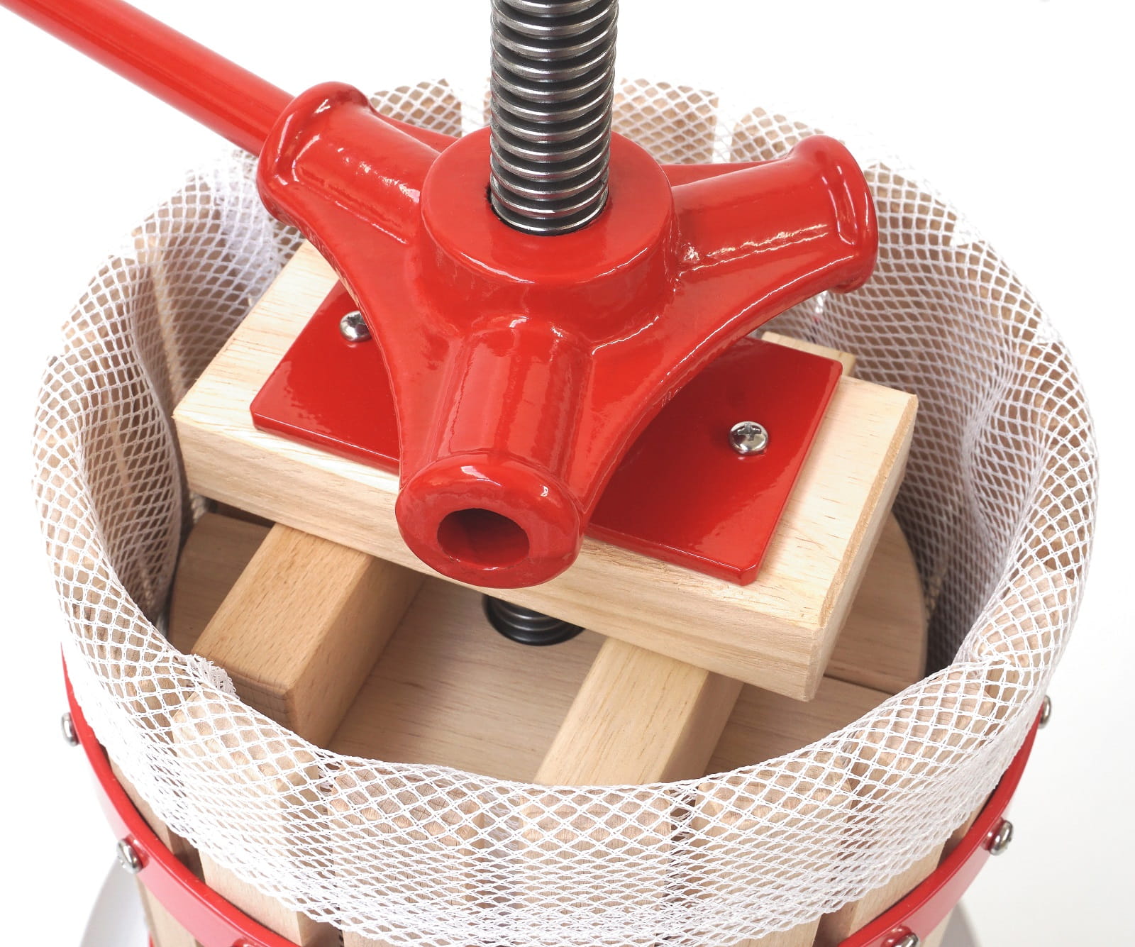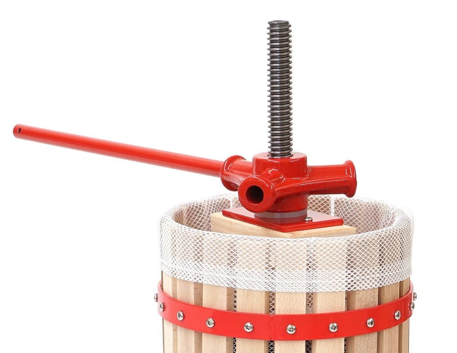 Wyposażenie prasy w wytrzymałą śrubę trapezową oraz wygodną korbę gwarantuje płynne i stabilne działanie oraz precyzyjne wyciskanie soków. Dzięki temu rozwiązaniu znacząco zmniejsza się wysiłek potrzebny do wywierania nacisku, co zapewnia wyjątkowy komfort podczas użytkowania.