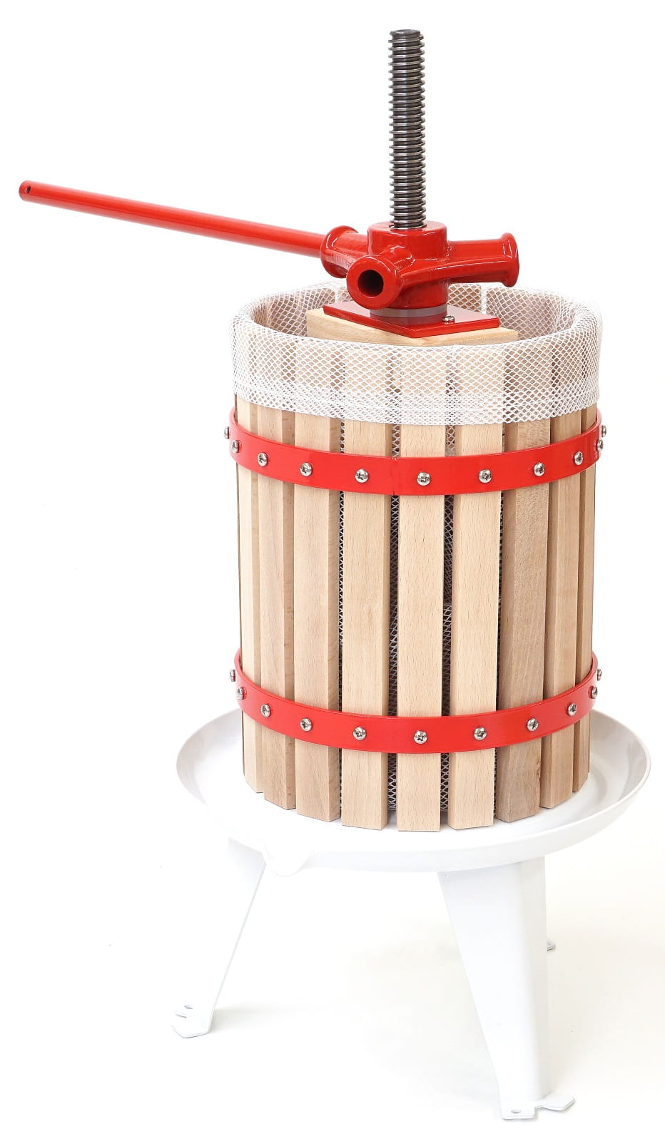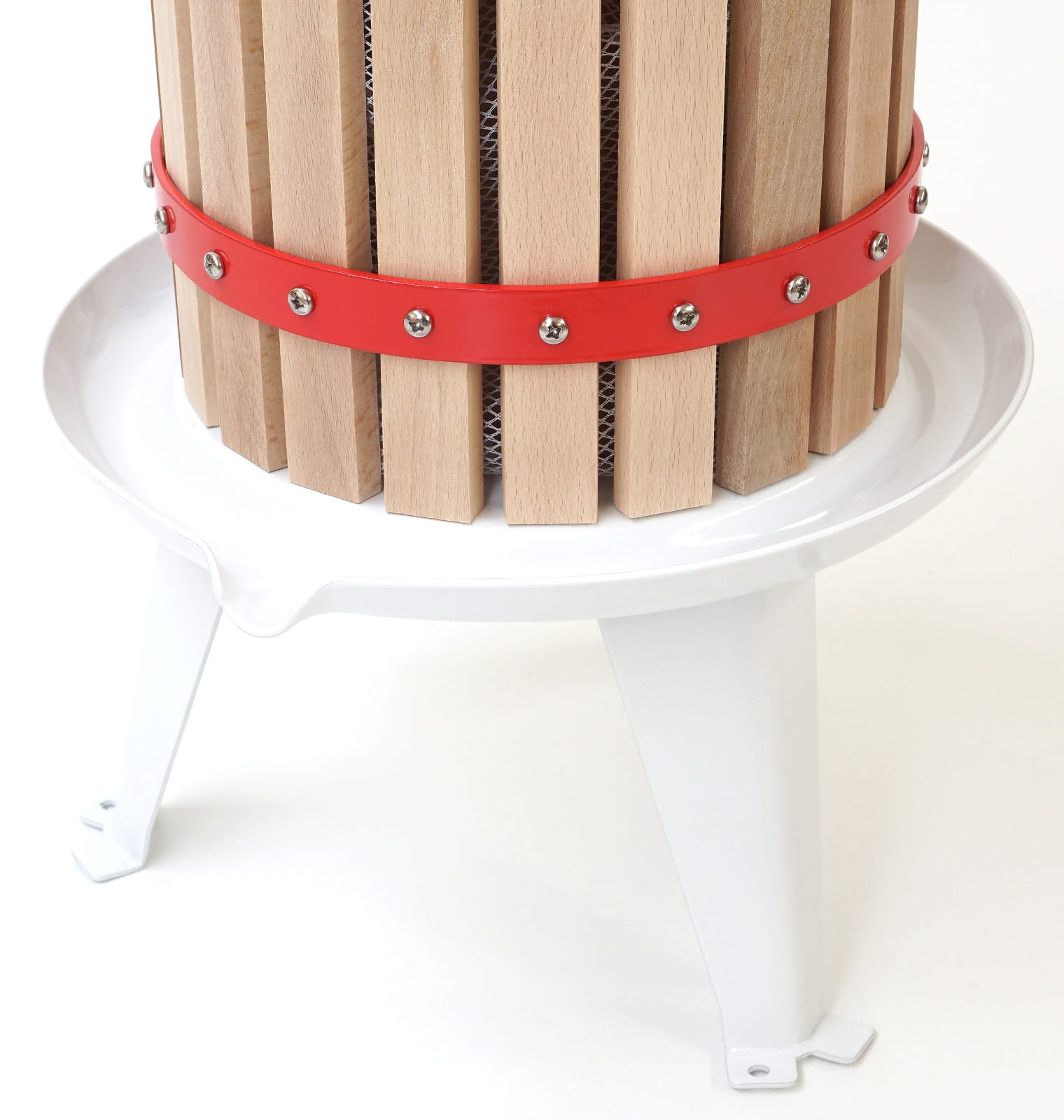 Stalowa podstawa prasy malowana jest proszkowo i została wyposażona w profilowany ociekacz. To innowacyjne rozwiązanie ułatwia proces ociekania soku. Dzięki temu, podstawa prasy nie tylko skutecznie zabezpiecza ją przed uszkodzeniami, ale także zapewnia czystość i porządek wokół niej podczas eksploatacji.