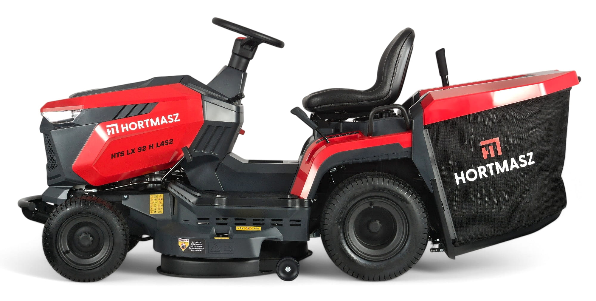 HORTMASZ HTS LX 92 H L452 to wydajny traktor ogrodowy z mocnym silnikiem Loncin 452 cm? i bezstopniową skrzynią hydrostatyczną TUFF TORQ (USA). Dzięki szerokości koszenia 92 cm, dwunożowemu agregatowi tnącemu i koszowi o pojemności 280 l, urządzenie sprawdza się idealnie na dużych terenach zielonych. Komfortową obsługę zapewniają regulowany fotel, pedały jazdy, wielofunkcyjny wyświetlacz, oświetlenie LED oraz system czujników zwiększających bezpieczeństwo. To profesjonalne narzędzie dla wymagających użytkowników ceniących moc, precyzję i wygodę.